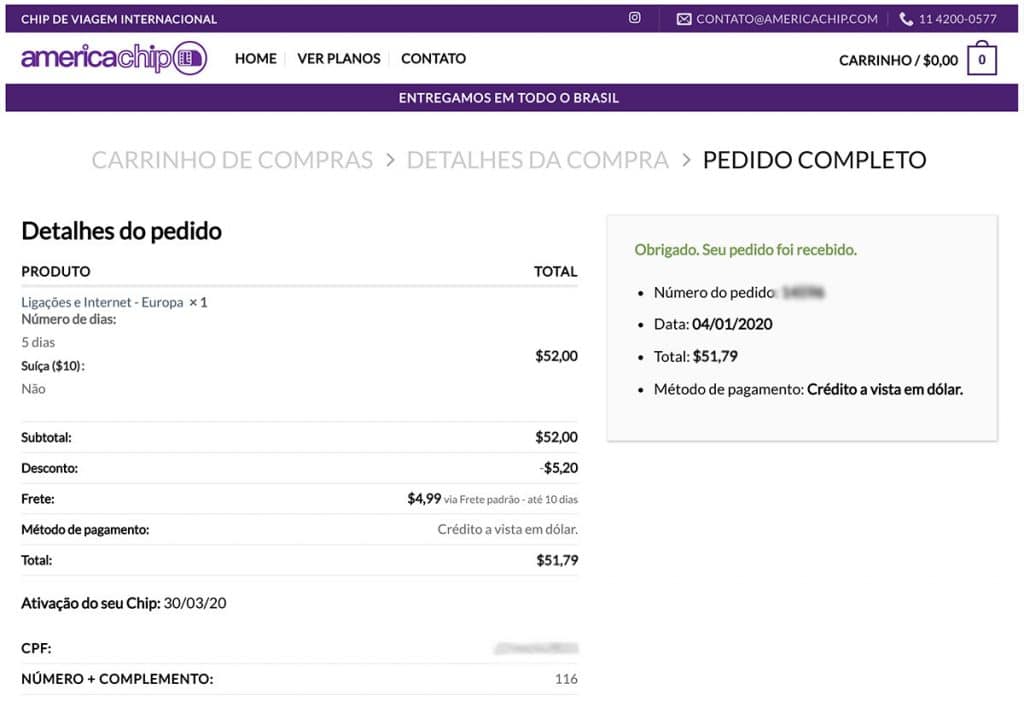 Vale a pena comprar online diretamente no site da America Chip, pois você chegará no país de destino já com internet disponível no celular.